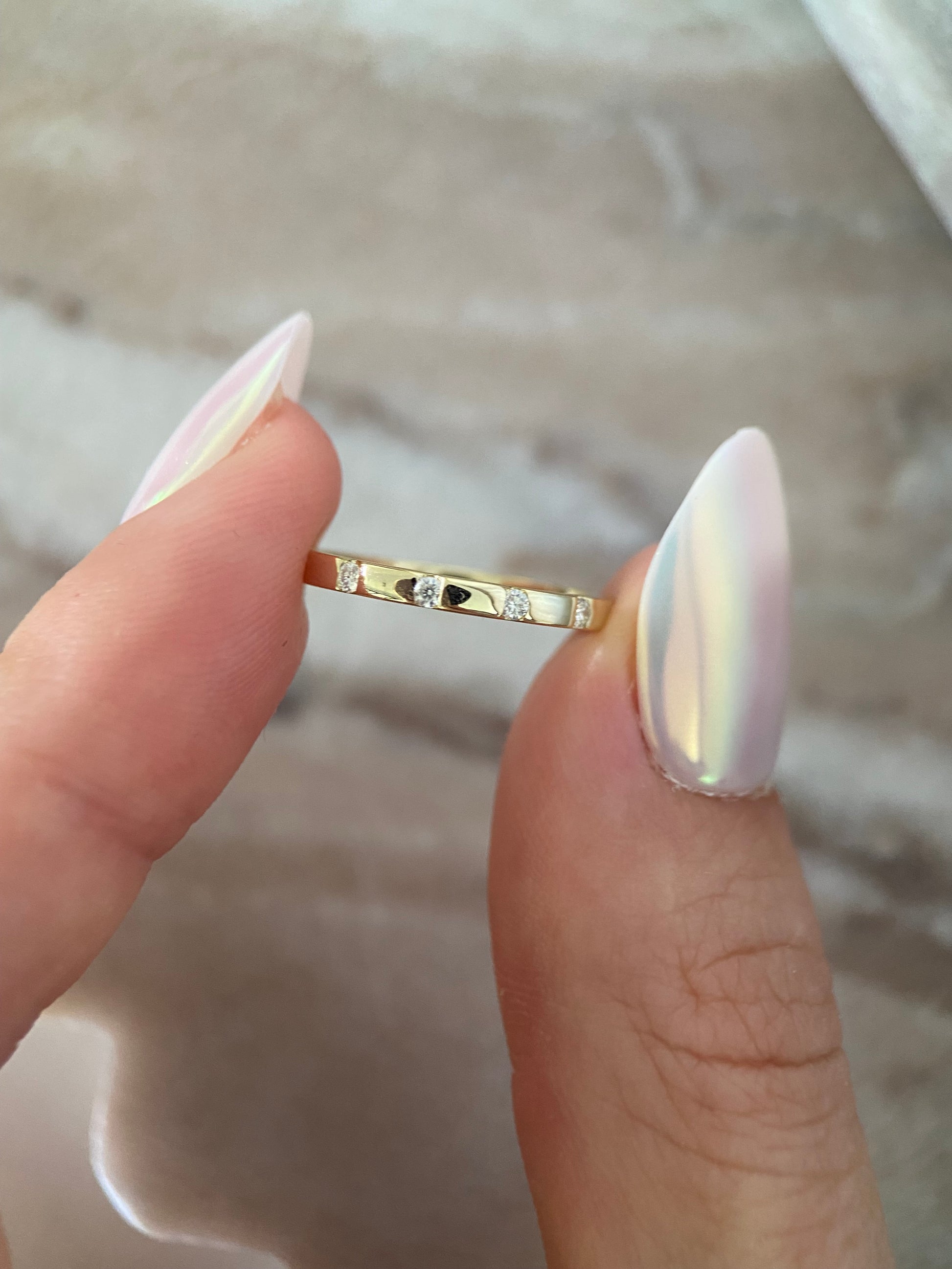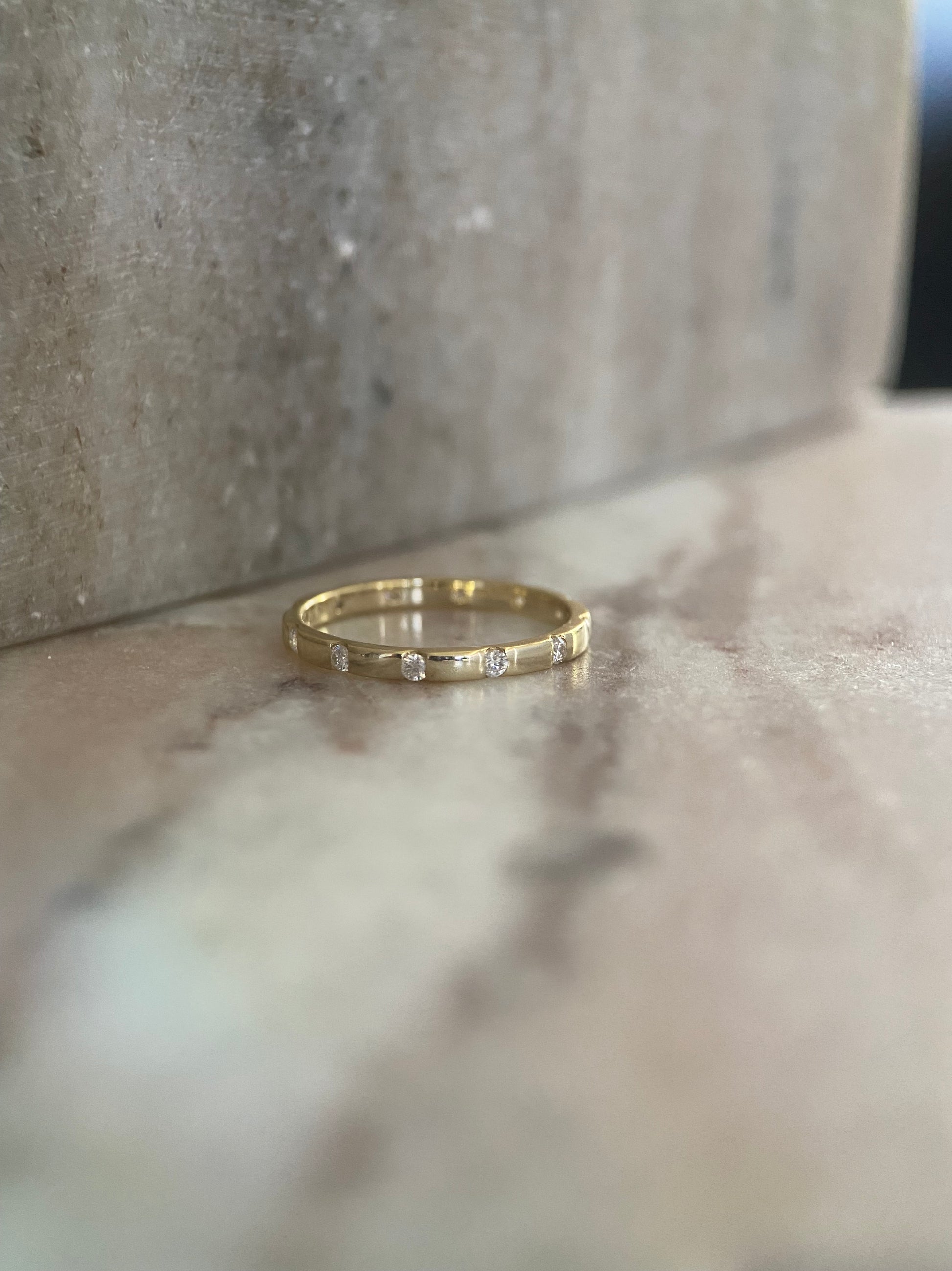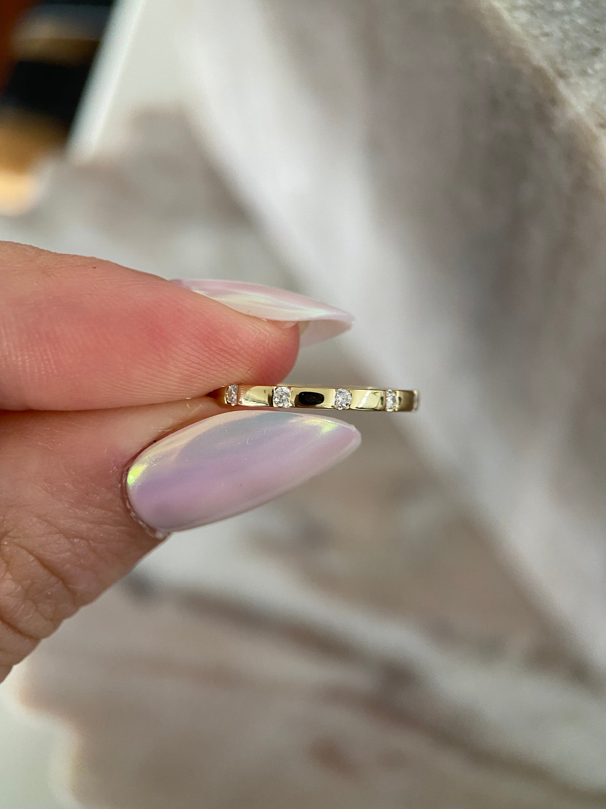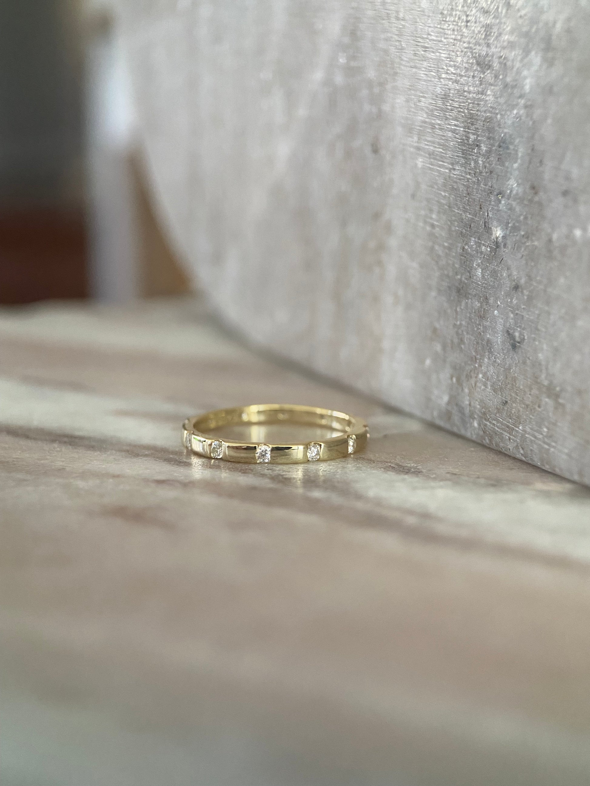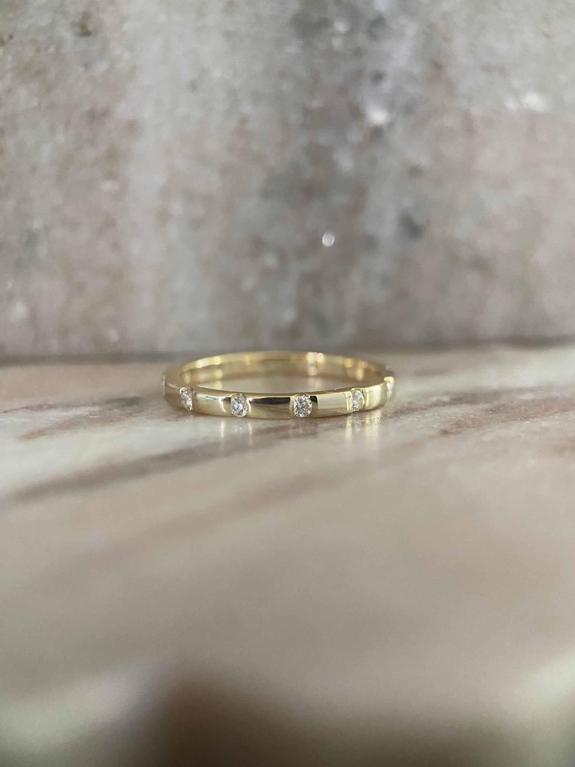 Battle of the Bands - KISS (Keep it Simple Stupid) features 1.8mm DEF round cut moissanites or lab diamonds in a solid gold setting.